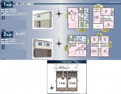 備考 | 1号棟:129.49㎡(土地)、95.58㎡(建物)、2588万円 | ||