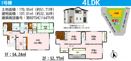 敷地面積 | 170.95㎡(51.71坪) | 建物面積 | 107.01㎡ (32.37坪) |