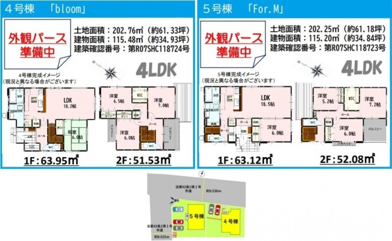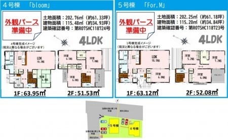 4号棟:202.76㎡(土地)、115.48㎡(建物)、2998万円 網戸、照明器具、カーテンレール、CATV等は別途注文となります。 |
