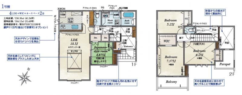 敷地面積 | 136.36㎡(41.24坪) | 建物面積 | 104.12㎡ (31.49坪) |