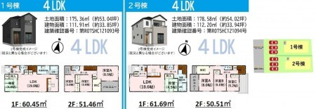 | 備考 | 1号棟:175.36㎡(土地)、111.91㎡(建物)、3798万円 | ||