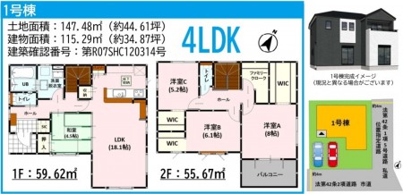 | 敷地面積 | 147.48㎡(44.61坪) | 建物面積 | 115.29㎡ (34.87坪) |