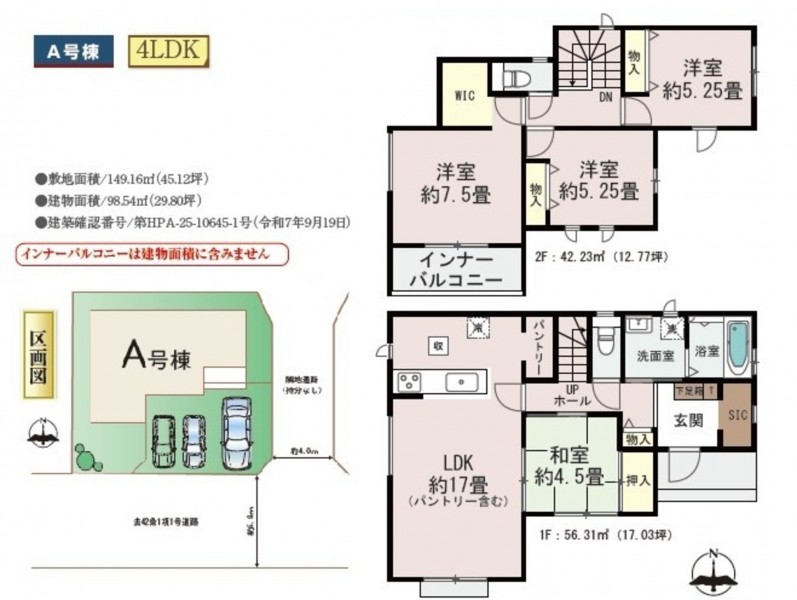 | 敷地面積 | 149.16㎡(45.12坪) | 建物面積 | 98.54㎡ (29.80坪) |
