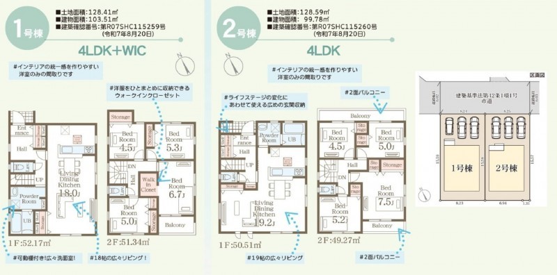 1号棟:128.41㎡(土地)、103.51㎡(建物)、2948万円 長期優良住宅 |