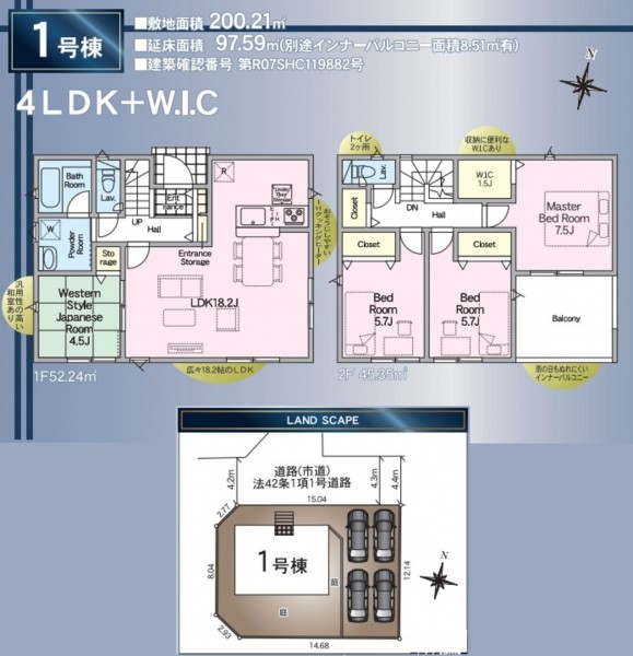 | 敷地面積 | 200.21㎡(60.56坪) | 建物面積 | 97.59㎡ (29.52坪) |