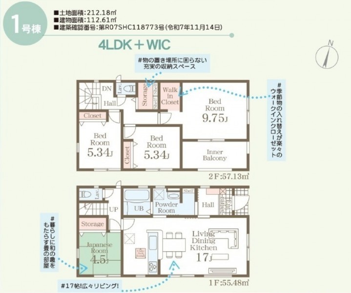 | 敷地面積 | 公簿 212.18㎡(64.18坪) | 建物面積 | 112.61㎡ (34.06坪) |