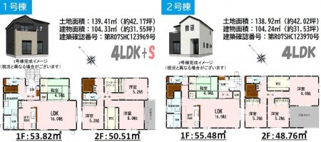 | 備考 | 2号棟:138.92㎡(土地)、104.24㎡(建物)、3798万円 | ||