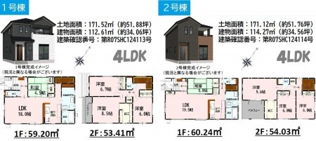 | 備考 | 1号棟:171.52㎡(土地)、112.61㎡(建物)、3798万円 | ||