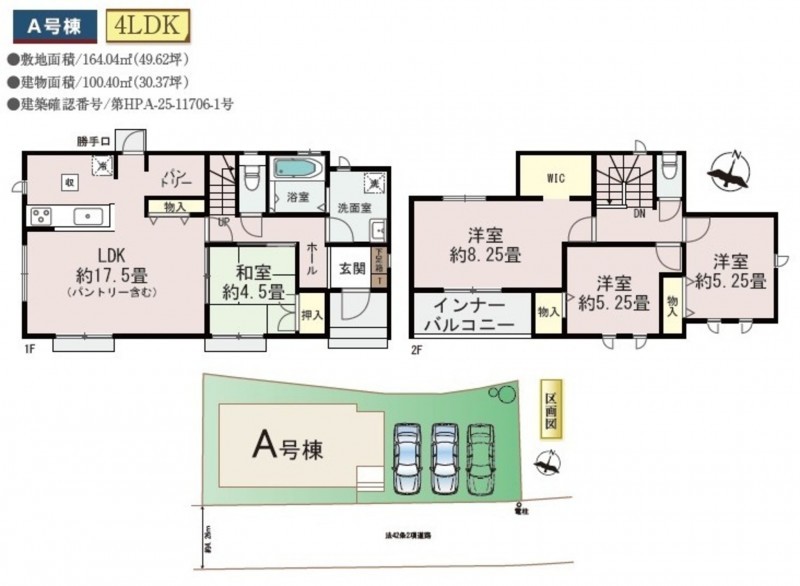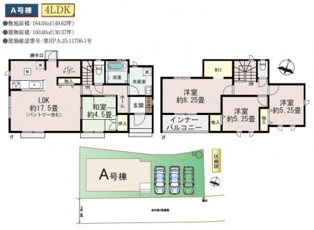 | 敷地面積 | 164.04㎡(49.62坪) | 建物面積 | 100.40㎡ (30.37坪) |