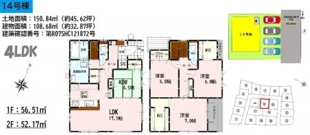 | 敷地面積 | 150.84㎡(45.62坪) | 建物面積 | 108.68㎡ (32.87坪) |
