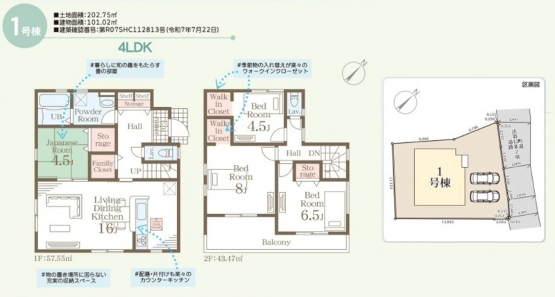 | 敷地面積 | 202.75㎡(61.33坪) | 建物面積 | 101.02㎡ (30.55坪) |
