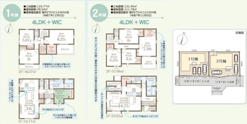 2号棟:131.95㎡(土地)、111.78㎡(建物)、4098万円 長期優良住宅認定物件、BELS、6項目最高等級:耐震等級(構造躯体の倒壊等防止)、耐震等級(構造躯体の損傷防止)、耐風等級、劣化対策等級、ホルムアルデヒド等級(内装及び天井裏等)、維持管理対策等級 |
