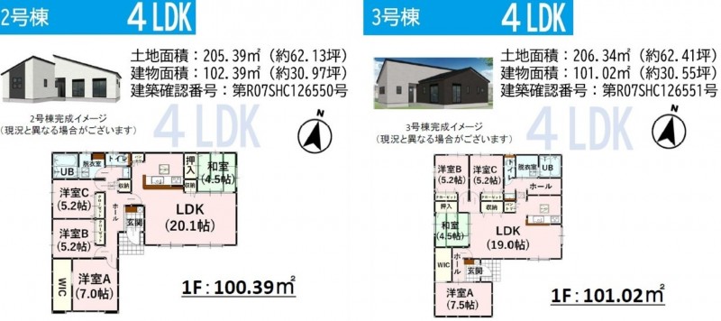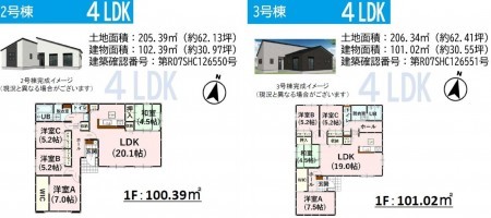 | 備考 | 2号棟:205.39㎡(土地)、102.39㎡(建物)、3398万円 | ||