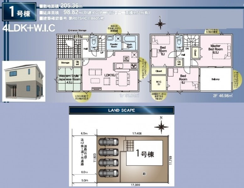 | 敷地面積 | 205.36㎡(62.12坪) | 建物面積 | 98.82㎡ (29.89坪) |