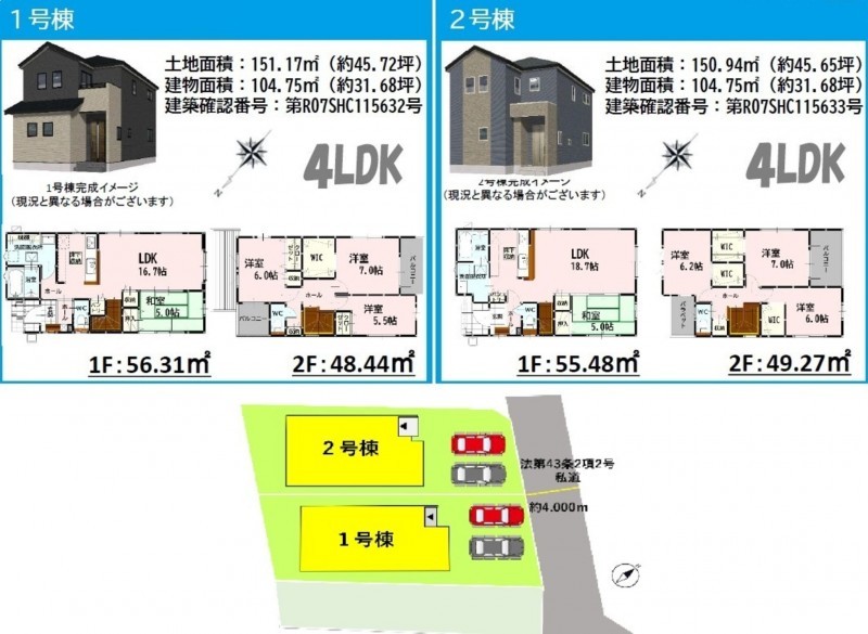 2号棟:150.94㎡(土地)、104.75㎡(建物)、3,198万円 網戸・照明器具・カーテンレール・CATV等は別途注文となります。 |