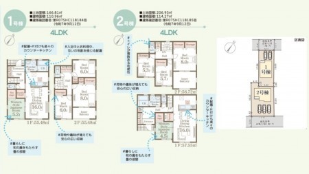 2号棟:206.93㎡(土地)、114.27㎡(建物)、3248万円 2号棟接道:南側6.0m公道、駐車場3台 |