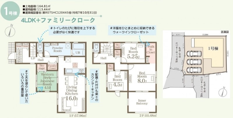 | 敷地面積 | 164.81㎡(49.85坪) | 建物面積 | 113.44㎡ (34.31坪) |