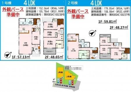 | 敷地面積 | 152.56㎡(46.14坪) | 建物面積 | 105.78㎡ (31.99坪) |
