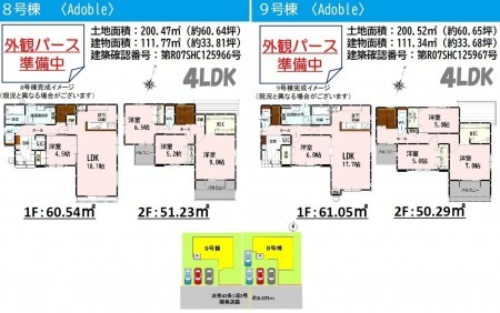 | 備考 | 9号棟:200.52㎡(土地)、111.34㎡(建物)、2998万円 | ||