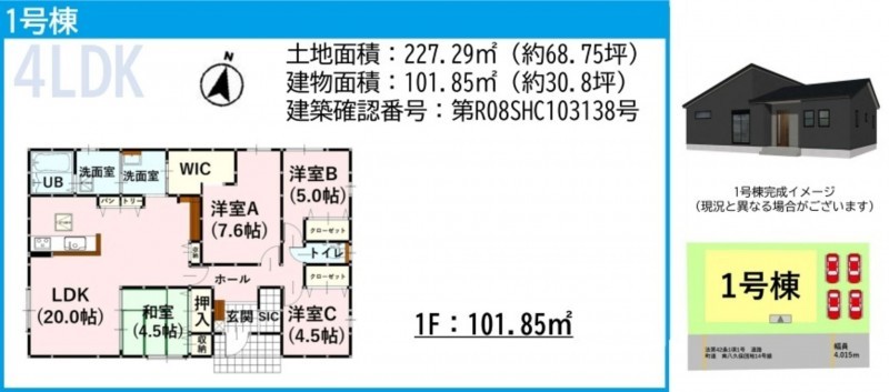 | 敷地面積 | 227.29㎡(68.75坪) | 建物面積 | 101.85㎡ (30.80坪) |
