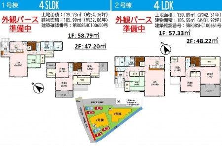 | 備考 | 2号棟4LDK:139.89㎡(土地)、105.55㎡(建物)、3298万円 | ||
