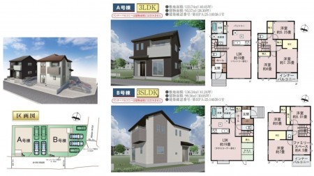 B号棟:136.34㎡(土地)、99.36㎡(建物)、3SLDK、3290万円 緩衝区:秋津小学校 長期優良住宅 |