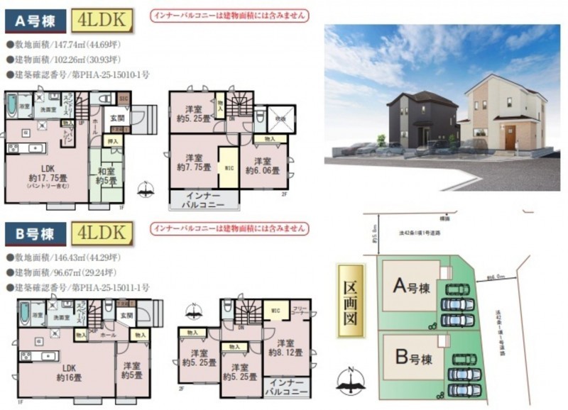 | 設備 | オール電化、シャンプードレッサー、洗浄便座、ウォークインクローゼット、モニタ付インターホン、駐車場2台分、駐車場3台分、トイレ2箇所 | ||