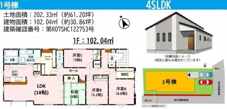 | 敷地面積 | 202.33㎡(61.20坪) | 建物面積 | 102.04㎡ (30.86坪) |