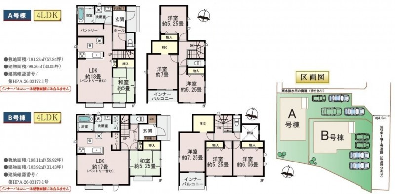 B号棟:198.11㎡(土地)、103.92㎡(建物)、3890万円 長期優良住宅、設計住宅性能評価書取得済 |