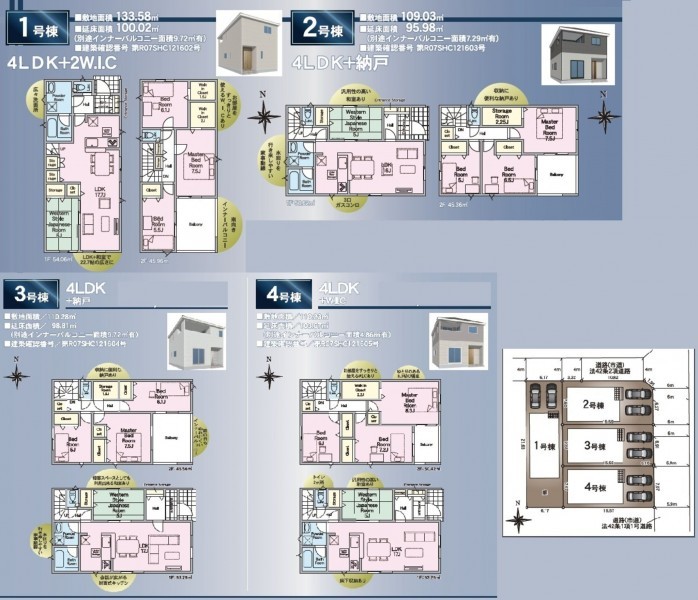 2号棟:109.03㎡(土地)、95.98㎡(建物)、3780万円 3号棟:110.28㎡(土地)、98.81㎡(建物)、3680万円 4号棟:110.23㎡(土地)、103.67㎡(建物)、3580万円 網戸・シャッター・面格子・カーテンレールは別途見積となります |