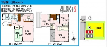 | 敷地面積 | 127.71㎡(38.63坪) | 建物面積 | 105.35㎡ (31.86坪) |