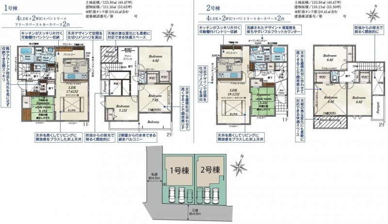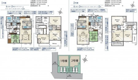 1号棟:133.80㎡(土地)、111.16㎡(建物)、3580万円 長期優良住宅 住宅性能表示建設+設計 |