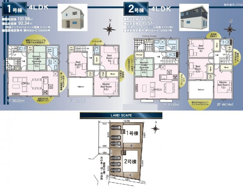 2号棟:145.15㎡(土地)、95.57㎡(建物)、2,680万円 網戸・シャッター・面格子・カーテンレールは別途見積となります。 電波障害による共聴アンテナ等の引き込みは買主様負担となります。 |
