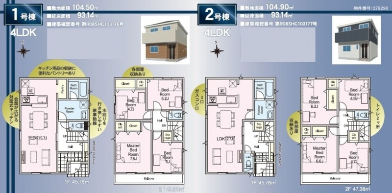 | 備考 | 2号棟:104.90㎡(土地)、93.14㎡(建物)、2580万円 | ||
