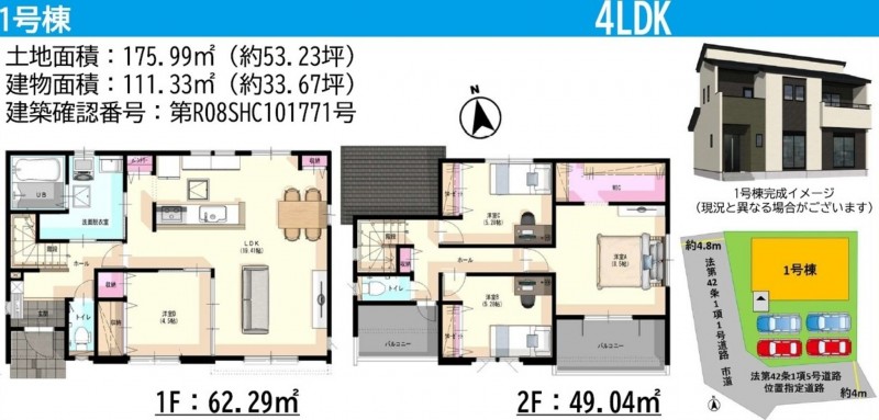 | 敷地面積 | 175.99㎡(53.23坪) | 建物面積 | 111.33㎡ (33.67坪) |