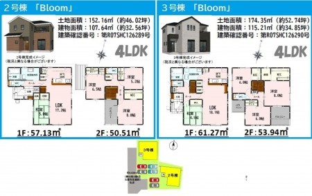 3号棟:174.35㎡(土地)、115.21㎡(建物)、3698万円 網戸・照明器具・カーテンレール・CATV等は別途注文です |